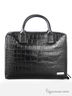 Деловая сумка под крокодила. Основное отделение на молнии. Внутри отделение на молнии, разделяющее ее на две части. Также имеются специальные кармашки для карточек, авторучек, аксессуаров. Подкладка - черный нейлон, фурнитура - серебро. Короткие, жесткие ручки. Дно жесткое.