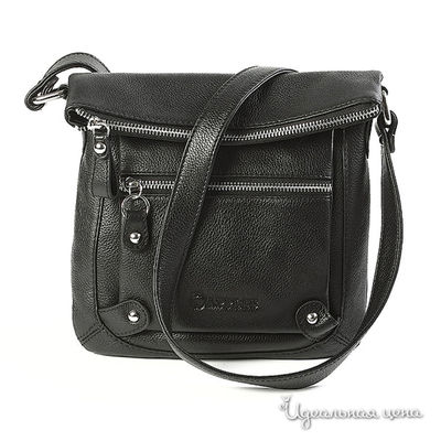 Тонкая сумка с перекидным верхом на кнопке. С лицевой стороны накладной карман на молнии и карманом на молнии с задней стороны . Основное отделение закрывается на молнию и содержит разного типа карманы. Подкладка - черный нейлон, фурнитура - серебро. Длинный регулируемый плечевой ремень.