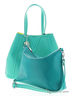 Женская сумочка DISPACCI бирюзового цвета. На сезон весна-лето 2014 очень популярны будут сумочки трапециевидной формы и минимализм в отделке. Сама сумочка выполнена из мягкой высококачественной эко кожи, за счет креплений у основания сумки, может менять форму. Дизайнеры не перестают удивлять нас своими новыми идеями! Две сумки в одной! Прекрасный вариант для тех кто любит удобство и стиль. Внутри сумки еще одна сумка, которая застегивается на общую металлическую молнию, и имеет боковой карман на молнии, и кармашки для мобильного телефона и мелочей, также к ней прилагается наплечный ремень, максимальная длина 110 см. Цвет фурнитуры - серебро. Модель имеет две ручки, высота 20 см. Размер 30*16*45 см; 22*12*30 см.