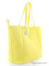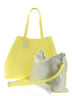Женская сумочка DISPACCI желтого цвета. На сезон весна-лето 2014 очень популярны будут сумочки трапециевидной формы и минимализм в отделке. Сама сумочка выполнена из мягкой высококачественной эко кожи, за счет креплений у основания сумки, может менять форму. Дизайнеры не перестают удивлять нас своими новыми идеями! Две сумки в одной! Прекрасный вариант для тех кто любит удобство и стиль. Внутри сумки еще одна сумка золотого цвета, которая застегивается на общую металлическую молнию, и имеет боковой карман на молнии, и кармашки для мобильного телефона и мелочей, также к ней прилагается наплечный ремень, максимальная длина 110 см. Цвет фурнитуры - серебро. Модель имеет две ручки, высота 20 см.