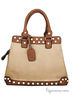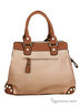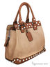 Женская сумочка Dispacci выполнена из мягкой эко кожи. Сумка имеет три отделения одно из которых закрывается на металлическую молнию, а два отделения закрываются на металлические кнопки. В отделении по середине имеется карман на молнии, карман для мелочи и мобильного. На оборотной стороне сумки имеется карман на молнии. Металлические шайбы -модная деталь сезона весна-лето 2013 года. Цвет фурнитуры золото. Высота ручек позволяет носить сумку на плече.