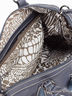 Закрывается на молнию, внутри одно отделение, разделенное карманом на молнии. На внутренних стенках один карман на молнии и два кармана открытых для мобильного телефона. На задней стенке карман на молнии.