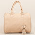 Изящная женская сумка из фактурной экокожи. Стенки изделия мягкие. Передняя часть сумки декорирована металлическим элементом. Основное отделение застегивается на молнию. Внутри два открытых кармашка, прорезной карман на молнии, одно открытое отделение, одно отделение на молнии. Подкладка - текстиль. Ручки средней длины позволяют носить сумку в руке. Цвет фурнитуры - золото, ножки. Дно формованное.