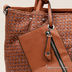 Изящная женская сумка из экокожи. Стенки изделия мягкие. Сумка декорирована продетыми блестящими ремешками. Основное отделение застегивается на молнию. Внутри два открытых кармашка и один прорезной карман на молнии. Срединник отстегивается и становится самостоятельной сумкой. Подкладка - текстиль. Ручки средней длины позволяют носить сумку на плече, в комплекте съемный ремешок. Цвет фурнитуры - серебро, ножки отсутствуют. Дно формованное.