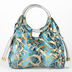Оригинальная сумка от Ed Hardy. Стенки очень мягкие. Обе стороны изделия выполнены с оригинальным принтом. Боковые стороны декорированы завязками. Основное отделение застегивается на магнитную кнопку. Внутри одно просторное отделение, один карман на молнии, два кармашка для мобильного и портмоне. Ручки очень прочные округлой формы. Ножек нет. Цвет фурнитуры - темное серебро.