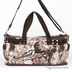 Оригинальная большая сумка от Ed Hardy из искусственной кожи. Стенки мягкие. Обе стороны изделия выполнены с оригинальным рисунком, вставками из замши и декорированы металлическими вставками в виде болтов. Боковые части дополнены кармашками на магнитной клепке. Нижняя часть сумки выполнена из фактурной кожи. Основной отдел застегивается на металлическую большую молнию. Внутри одно просторное отделение, один открытый карман, один карман на молнии, кармашек для мобильного, 4 отделения дли визиток, и еще 3 маленьких кармашка. Ручки выполнены из плотной замши. Длинный съемный регулируемый ремешок выполнен из прочного текстиля со специальной вставкой для плеча. Дно формованное. Ножек нет. Цвет фурнитуры - темное серебро.