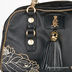 Стильная сумка на двух ручках-цепочках. Лицевая часть сумки украшена элегантным принтом. Спереди по краю сумка декорирована золотой цепочкой. Спереди фирменный логотип и брелок-кисточка. Застежка-молния. Внутри одно отделение с боковыми карманами для мобильного телефона.