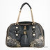 Стильная сумка на двух ручках-цепочках. Лицевая часть сумки украшена элегантным принтом. Спереди по краю сумка декорирована золотой цепочкой. Спереди фирменный логотип и брелок-кисточка. Застежка-молния. Внутри одно отделение с боковыми карманами для мобильного телефона.