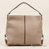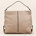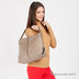Сумка из фактурной кожи. Основное отделение застегивается на металлическую молнию. Внутри два открытых кармашка и один прорезной на молнии. Небольшой ремешок. Дно мягкое формованное, с пятью ножками. Декоративные хлястики по бокам.