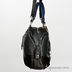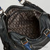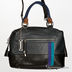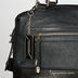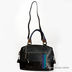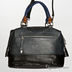 Женская сумка ELEGANZZA изготовлена из натуральной матовой кожи темно-серого цвета. Низ сумки и ручка из кожи черного цвета. На передней и задней стенке - удобный кармашек на молнии. На передней стенке - декоративная отделка полосочками из голубой и фиолетовой замши. Внутри - два отделения, разделённые средником на молнии, в одном имеется кармашек на молнии, в другом - кармашек для мобильного телефона и открытый кармашек. Все молнии металлические. Ножки на дне есть. Цвет фурнитуры - блестящее серебро. Модель вмещает формат А4. Сумка держит форму в наполненном состоянии. Высота ручек (17,5 см) не позволяет носить сумку на плече. В комплекте есть наплечный ремень.