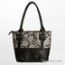 Женская сумка ELEGANZZA изготовлена из натуральной матовой кожи черного цвета. На передней и задней стенках расположены декоративные клапаны . На задней стенке, под клапаном, удобный кармашек на молнии. На переднем и заднем клапане - кожа с лазерной обработкой голубого цвета. Внутри - два отделения, разделённые средником на молнии, в одном имеется кармашек на молнии, в другом - кармашек для мобильного телефона и открытый кармашек. Сумка закрывается на общую пластиковую молнию. Ножки на дне есть. Цвет фурнитуры - блестящее серебро. Модель не вмещает формат А4. Сумка держит форму в наполненном состоянии. Высота ручек (25 см) позволяет носить сумку на плече. Наплечного ремня в комплекте нет.