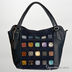 Женская сумка ELEGANZZA выполнена из натуральной матовой кожи темно-синего цвета. На передней стенке - вставка из замши темно-синего цвета с разноцветными кусочками кожи, закрепленными на блочки. ВНИМАНИЕ! ЦВЕТНЫЕ КУСОЧКИ КОЖИ НА КАЖДОЙ СУМКЕ РАЗНЫЕ. КАЖДОЕ ИЗДЕЛИЕ ИНДИВИДУАЛЬНО. Внутри - два отделения, разделённые средником на молнии, в одном имеется кармашек на молнии, в другом - кармашек для мобильного телефона и открытый кармашек. Сумка закрывается на общую пластиковую молнию. Ножки на дне есть. Цвет фурнитуры - блестящее серебро. Модель вмещает формат А4. Пустая сумка не держит форму. Высота ручек (21 см) позволяет носить сумку на плече. В комплекте нет наплечного ремня.