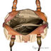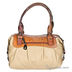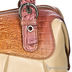 ELEGANZZA выполнена из натуральной матовой кожи бежевого цвета с отделкой оранжевого цвета из кожи с теснением под крокодила. На задней стенке имеется удобный кармашек на молнии. Внутри - два отделения, разделённые средником на молнии, в одном имеется кармашек на молнии, в другом - кармашек для мобильного телефона и открытый кармашек. Сумка закрывается на общую металлическую молнию. Ножки на дне есть. Цвет фурнитуры - блестящее серебро. Модель вмещает формат А4. Пустая сумка держит форму в наполненном состоянии. Высота ручек (22 см) позволяет носить сумку на плече.