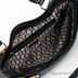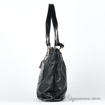 Оригинальная сумка ELEGANZZA выполнена из натуральной кожи. Отделка черной кожей с лазерной обработкой под рептилию. На задней стенке есть удобный кармашек на молнии. Внутри - два отделения, есть средник на молнии, имеется кармашек на молнии, кармашек для мобильного телефона и открытый кармашек. Сумка закрывается на пластиковую молнию. Ножки на дне есть. Цвет фурнитуры - блестящее серебро. Крепление ручек имеет декоративные деревянные покрытые лаком бусины. Модель свободно вмещает формат А4. Сумка держит форму в наполненном состоянии. Высота ручек (26 см).