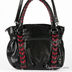 Элегантная сумка ELEGANZZA выполнена из натуральной кожи черного цвета с выделкой под рептилию. Отделка кожей с лазерной обработкой под рептилию красного цвета. На задней стенке есть удобный кармашек на молнии. Внутри - два отделения, разделённые средником на молнии, в одном имеется кармашек на молнии, в другом - кармашек для мобильного телефона и открытый кармашек. Сумка закрывается на пластиковую молнию. Ножки на дне есть. Цвет фурнитуры - черненое серебро. Модель не вмещает формат А4. Пустая сумка не держит форму. Высота ручек (16 см)