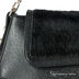 Изящная маленькая сумочка из натуральной кожи черного цвета. На передней стенке и на клапане - натуральный мех жеребенка черного цвета. На задней стенке - открытый кармашек на магнитной кнопке. Внутри - одно отделение, в котором имеется кармашек на молнии, кармашек для мобильного телефона и открытый кармашек. Сумка закрывается общую металлическую молнию и дополнительно клапаном на магнитной кнопке. Ножки на дне есть. Цвет фурнитуры - золото. Модель не вмещает формат А4. Пустая сумка держит форму. Высота ручки (20 см) позволяет носить сумку на плече. В комплекте нет наплечного ремня.
