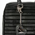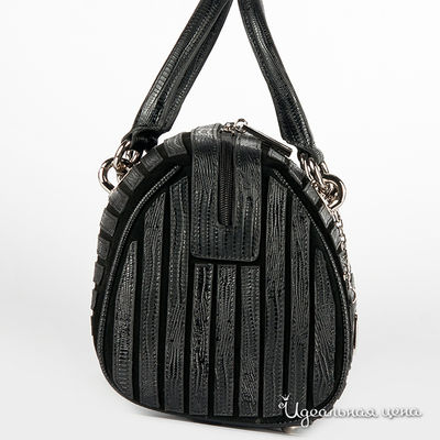 Стильная маленькая сумочка из натуральной замши черного цвета. На замшу настрочены полоски из натуральной кожи черного цвета с тиснением под рептилию. Внутри одно отделение, в котором имеется кармашек на молнии, кармашек для мобильного телефона и открытый кармашек. Сумка закрывается на пластиковую молнию. Ножки на дне есть. Цвет фурнитуры - блестящее серебро. Модель не вмещает формат А4. Пустая сумка держит форму. Высота ручек (12 см) не позволяет носить сумку на плече. В комплекте есть наплечный ремень.
