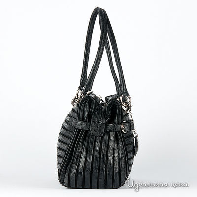 Объемная сумка ELEGANZZA выполнена из натуральной замши черного цвета. На замшу настрочены полоски из натуральной кожи с тиснением под рептилию. На задней стенке есть удобный кармашек на молнии. Внутри - два отделения, разделённые средником на молнии, в одном имеется кармашек на молнии, в другом - кармашек для мобильного телефона и открытый кармашек. Сумка закрывается на пластиковую молнию. Ножки на дне есть. Цвет фурнитуры - блестящее серебро. Модель вмещает формат А4. Пустая сумка держит форму. Высота ручек (24 см) позволяет носить сумку на плече. В комплекте нет наплечного ремня