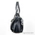 Женская сумка ELEGANZZA выполнена из натуральной матовой кожи черного цвета. Отделка- декоративные элементы серого цвета. На задней стенке имеется удобный кармашек на молнии. Внутри - одно отделение в котором имеется кармашек на молнии, кармашек для мобильного телефона и открытый кармашек. Сумка закрывается на общую пластиковую молнию. Ножки на дне есть. Цвет фурнитуры - блестящее серебро. Модель не вмещает формат А4. Сумка держит форму в наполненном состоянии. Высота ручек (15 см)не позволяет носить сумку на плече, в комплекте есть наплечный ремень.