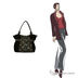 Женская сумка ELEGANZZA выполнена из натуральной замши черного цвета. Отделка - роспись замши на передней стенке. Сумка закрывается на общую пластиковую молнию. На задней стенке имеется удобный кармашек на молнии. Внутри - два отделения, разделённые средником на молнии, в одном имеется кармашек на молнии, в другом - кармашек для мобильного телефона и открытый кармашек. На боковых стенках - декоративная отделка цепочкой. Ножки на дне есть. Цвет фурнитуры - чернёное серебро. Модель не вмещает формат А4. Сумка держит форму в наполненном состоянии. Высота ручек (28 см) позволяет носить сумку на плече. Наплечного ремня в комплекте нет.