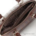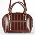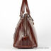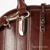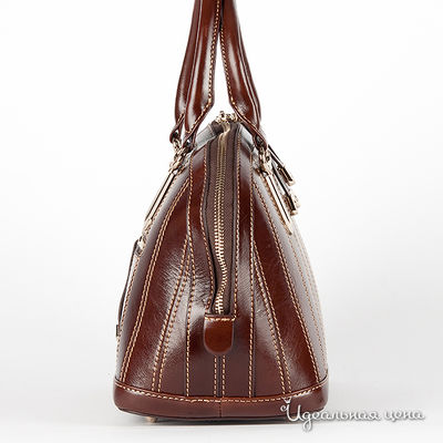 Элегантная сумка из натуральной кожи коричневого цвета. На задней стенке - удобный кармашек на молнии. Внутри два отделения, разделенные средником на молнии. В одном имеется кармашек на молнии и кармашек для мобильного телефона, в другом - открытый кармашек. Сумка закрывается на общую металлическую молнию. Ножки на дне есть. Цвет фурнитуры - матовое золото. Модель не вмещает формат А4. Пустая сумка держит форму. Высота ручек (11 см) не позволяет носить сумку на плече. В комплекте есть наплечный ремень
