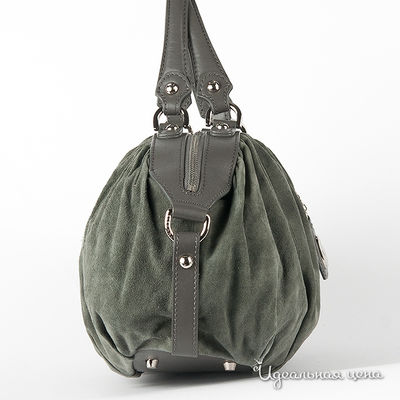 Изящная сумка ELEGANZZA выполнена из натуральной замши с отделкой из натуральной кожи. Внутри - два отделения, разделённые средником на молнии, в одном имеется кармашек на молнии, в другом - кармашек для мобильного телефона и открытый кармашек. Сумка закрывается на металлическую молнию. Ножки на дне есть. Цвет фурнитуры - блестящее серебро. Модель не вмещает формат А4. Пустая сумка не держит форму. Высота ручек (12 см) не позволяет носить сумку на плече. В комплекте нет наплечного ремня.