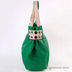 Оригинальная женская сумка из гладкой искусственной кожи. Стенки изделия мягкие. Украшена декоративными клепками. С обратной стороны прорезной карман на молнии. Один основной отдел. Ручки средней длины позволяют носить сумку на плече. Цвет фурнитуры - серебро. Дно формованное.