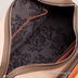 Элегантная женская сумка из искусственной кожи. Стенки изделия мягкие. Один внешний карман на молнии. Основное отделение застегивается на металлическую молнию. Внутри два открытых кармашка и один прорезной карман на молнии. Внутренняя часть разделена текстильной перегородкой на молнии. Подкладка - текстиль. Две небольшие ручки. Цвет фурнитуры - золотистый. Дно плотное, формованное, с пятью ножками.