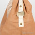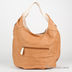 Женская сумка бежевого цвета из искусственной кожи гладкой фактуры с эффектом лоска. Сумка имеет мягкие стенки. Застежка на молнию. На задней стенке карман на молнии. С одной ручкой. Внутри одно большое отделение. Карман для мобильного телефона, открытый карман. Жесткое формованное дно, без ножек.