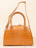 Стильная сумка из фактурной экокожи. С обратной стороны сумки расположен прорезной карман на молнии. Основное отделение застегивается на молнию. Внутри два открытых накладных кармана и одни накладной карман на молнии, один прорезной карман на молнии. Сумка не вмещает формат А4. Плотное дно дополнено четырьмя металлическими ножками. Ручки средней длины позволяют носить сумку на плече. В комплекте длинный съемные ремень.