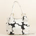 Элегантная женская сумка из текстиля и искусственной кожи. Стенки изделия мягкие. Сумка декорирована оригинальными нашивками. Один внешний карман на молнии. Основное отделение застегивается на молнию. Внутри два открытых кармашка и один прорезной карман на молнии. Подкладка - текстиль. Небольшие ручки. Цвет фурнитуры - золотистый. Дно формованное, плотное.