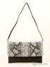 Эффектная женская сумка из экокожи. Стенки изделия жесткие. Основное отделение застегивается на клапан с магнитами. Внутри два открытых небольших кармашка и один прорезной карман на молнии. Текстильная подкладка. Ручка средней длины позволяет носить сумку на плече.