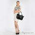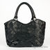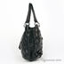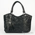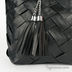 Женская сумка черного цвета из искусственной кожи рельефной фактуры. Сумка имеет мягкие стенки. Застежка на молнию. Без наплечного ремня. С двумя ручками. Сумка декорирована оригинальным брелоком на карабине и стильным плетением. Внутри одно большое отделение. Карман для мобильного телефона, открытый карман. Жесткое дно, без ножек.