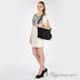 Женская сумка черного цвета из искусственной кожи гладкой фактуры. Сумка имеет мягкие стенки. Застежка на молнию. Один карман на задней стенке на молнии. Наплечный ремень отстегивается, регулируется по длине. С двумя ручками. Сумка дополнена тремя карманами. Внутри одно большое отделение, разделенное средником на молнии. Карман для мобильного телефона, открытый карман. Мягкое формованное дно, без ножек.