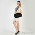 Женская сумка черного цвета из искусственной кожи гладкой фактуры. Сумка имеет мягкие стенки. Застежка на молнию. Наплечный ремень отстегивается, регулируется по длине. С двумя ручками.. Внутри одно большое отделение. Карман для мобильного телефона, открытый карман. Мягкое дно, без ножек.