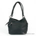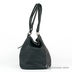 Женская сумка черного цвета из искусственной кожи гладкой фактуры. Сумка имеет мягкие стенки. Застежка на молнию. На задней стенке карман на молнии. Без наплечного ремня. С двумя ручками. Сумка декорирована белой прострочкой и кнопками, регулирующими форму изделия. Внутри одно большое отделение. Карман для мобильного телефона, открытый карман. Твердое дно, без ножек.
