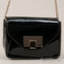 Элегантная женская сумочка из искусственной лаковой кожи. Стенки изделия плотные. Основное отделение застегивается на металлическую молнию и клапан с замком-щеколдой. Внутри один открытый кармашек. Подкладка - текстиль. Плечевой ремень - цепочка. Цвет фурнитуры - золотистый. Дно плотное, формованное, с четырьмя ножками.