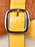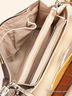 Эффектная сумка из фактурной кожи. Застежка на клапан с магнитной кнопкой. На обратной стороне прорезной карман на молнии. Внутри два основных отделения и одно дополнительное на молнии, один прорезной карман на молнии, два накладных кармана. Сумка не вмещает формат А4. Мягкое дно не дополнено ножками. В комплекте два съемные ручки: одна позволяет носить на руке, а другая - на плече.