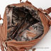 Женская сумка коричневого цвета из искусственной кожи гладкой фактуры. Сумка имеет мягкие стенки. Застежка на молнию. Один карман на задней стенке на молнии. Наплечный ремень отстегивается, регулируется по длине. С двумя ручками. Сумка дополнена металлическим брелоком на ремешке. Внутри одно большое отделение, разделенное средником на молнии. Карман для мобильного телефона, открытый карман. Мягкое формованное дно, без ножек.