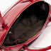 Броская женская сумка из искусственной лакированной кожи. Стенки изделия плотные. Основное отделение застегивается на металлическую молнию. Внутри два открытых кармашка и два прорезных кармана на молнии. Подкладка текстиль. Ручки средней длины позволяют носить сумку на плече, в комплекте съемный ремешок. Цвет фурнитуры - золотой. Дно формованное с металлическими ножками.