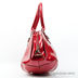 Броская женская сумка из искусственной лакированной кожи. Стенки изделия плотные. Основное отделение застегивается на молнию. Внутри два открытых кармашка и два прорезных кармана на молнии. Подкладка текстиль. Ручки средней длины позволяют носить сумку на плече, в комплекте съемный ремешок. Цвет фурнитуры - золотой. Дно формованное с металлическими ножками.