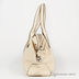 Женская сумка молочного цвета из искусственной кожи гладкой фактуры. Сумка имеет мягкие стенки. Застежка на молнию. Наплечный ремень отстегивается, регулируется по длине. С двумя ручками. Сумка дополнена металлическими застежками, регулирующими форму изделия. Внутри одно большое отделение. Карман для мобильного телефона, открытый карман. Мягкое формованное дно, без ножек.