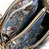 Прекрасная женская сумка из текстиля с элементами из искусственной кожи. Стенки изделия плотные. Передняя часть сумки декорирована блестками, что подчеркивает фактуру изделия. Один внешний карман на молнии. Основное отделение застегивается на молнию. Внутри два открытых кармашка и два прорезных кармана на молнии. Подкладка текстиль. Ручки средней длины позволяют носить сумку на плече. Цвет фурнитуры - золотой. Дно формованное с металлическими ножками.