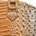 Броская женская сумка из искусственной фактурной кожи под крокодила. Стенки изделия плотные. Основное отделение застегивается на металлическую молнию. Внутри один открытый кармашек и один прорезной карман на молнии. Подкладка текстиль. Небольшие ручки. Цвет фурнитуры - золотой. Дно формованное с металлическими ножками.