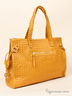Стильная сумка из мягкой кожи с вплетенными вставками. На боковых стенках расположены кнопки для регулирования внутреннего объема. Основное отделение застегивается на магнитную кнопку. Внутри располагается текстильный съемный отдел с прорезным карманом на молнии и двумя накладными карманами. Сумка вмещает формат А4. Плотное дно не дополнено ножками. Ручки средней длины позволяют носить сумку на плече.
