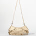 Стильная женская сумка из искусственной кожи. Стенки изделия средней плотности. Сумка декорирована воланами по бокам. Основное отделение застегивается на металлическую молнию. Внутри один открытый кармашек и один прорезной карман на молнии. Подкладка текстиль. Ручки отсутствуют, в комплекте съемный ремешок позволяет носить сумку на плече. Цвет фурнитуры - золотой, ножки отсутствуют. Дно формованное.