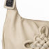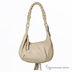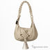 Изящная сумка из искусственной кожи на одной ручке. Внутри сумки одно отделение с кармашками. Передняя стенка сумки декорирована бахрамой из кожи. Дополнительное украшение —плетеный узор на передней стороне сумки и ажурная плетеная ручка. Сумка закрывается на пластиковую молнию. Ножек на дне нет. Цвет фурнитуры - бежевый. Модель вмещает формат А4. Сумка держит форму в наполненном состоянии.