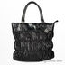 Классическая женская сумка черного цвета с текстильной вставкой. Внутри - одно вместительное отделение, имеется карман на молнии, карман для мобильного телефона и открытый карман. Дополнительное украшение - брелок, крепящийся на ручке сумки. Сумка закрывается на пластиковую молнию. Цвет фурнитуры — блестящее серебро. Ножек на дне - нет. Удобные и прочные ручки позволяют носить сумку на плече.