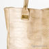 Классическая женская сумка песочного цвета на двух ручках с отделкой под рептилию.Внутри - два отделения, разделенные средником на молнии, в одном имеется карман на молнии, в другом - карман для мобильного телефона и открытый карман. Сумка закрывается на магнитную кнопку.Ножек на дне - нет.