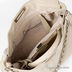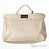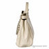 Ультрасовременная сумка из искуственной кожи бежевого цвета. Внутри - два отделения, разделенные средником на молнии, в одном имеется карман на молнии, в другом - карман для мобильного телефона и открытый карман.Дополнительное украшение — переплетение кожи и метеллической цепочки, ремни по бокам сумки. Цвет фурнитуры – блестящее серебро. Высота ручки (8 см) не позволяет носить сумку на плече.